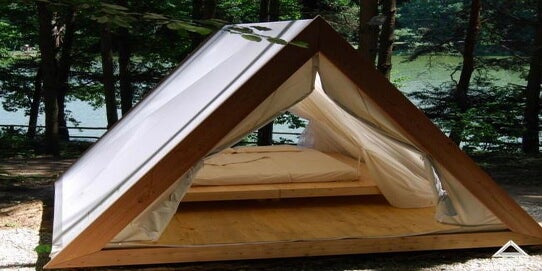 Cette tente en bois offre tout le confort qui manque aux gens dans la tente, comme une plate-forme de lit king-size, des planchers en bois, un éclairage, des prises électriques et une moustiquaire. Idéal pour les lieux éphémères et les destinations estivales. Montage rapide et facile à installer avec des bases de pieds en acier incluses sur des terrains nivelés.