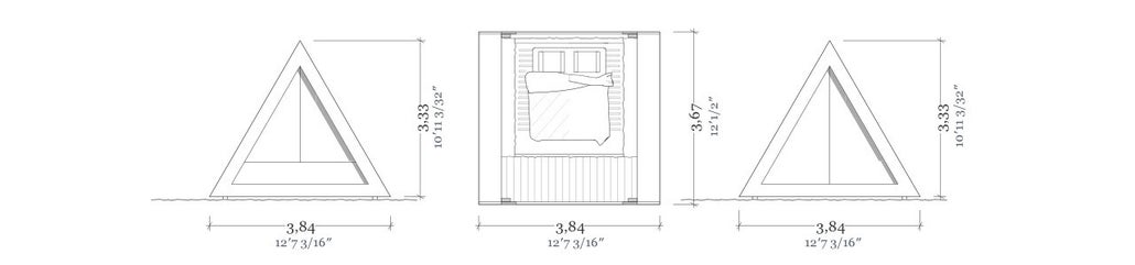 Largeur Mini A-frame 4 m X Longueur 3,65m x Hauteur 3,40m