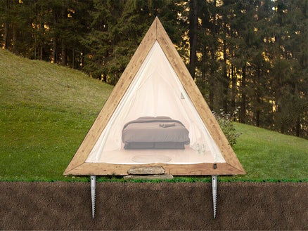 Cette tente en bois offre tout le confort qui manque aux gens dans la tente, comme une plate-forme de lit king-size, des planchers en bois, un éclairage, des prises électriques et une moustiquaire. Idéal pour les lieux éphémères et les destinations estivales. Montage rapide et facile à installer avec des bases de pieds en acier incluses sur des terrains nivelés.