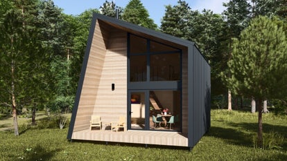 Le modèle Freja 68 m² est l'évolution spacieuse de notre concept iconique. Avec son toit asymétrique et sa façade monumentale entièrement vitrée, il ne se contente pas d'être une cabane design : c'est une véritable maison de vie, pensée pour maximiser la lumière et la fluidité entre l'intérieur et l'extérieur.