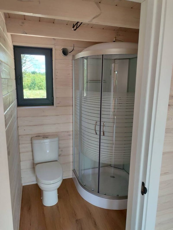 👉 Montage : Maison Hors d'eau Hors d'air + Habillage bois intérieur (Épicéas) Murs / Plafond + Cloisons bois et kit poteau + Isolant 100 mm + Passages gaines électriques & Conduites eaux froides et eaux chaudes plomberie.