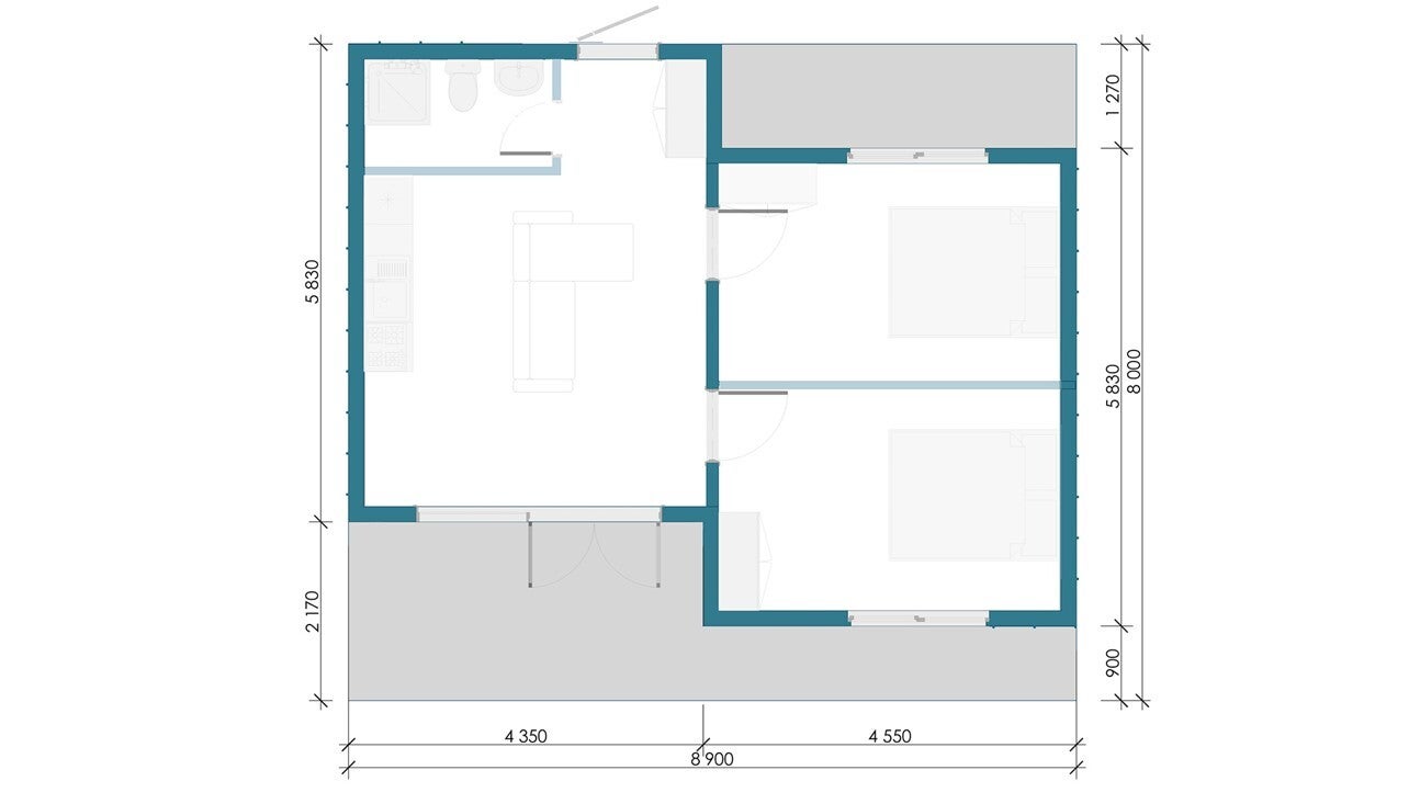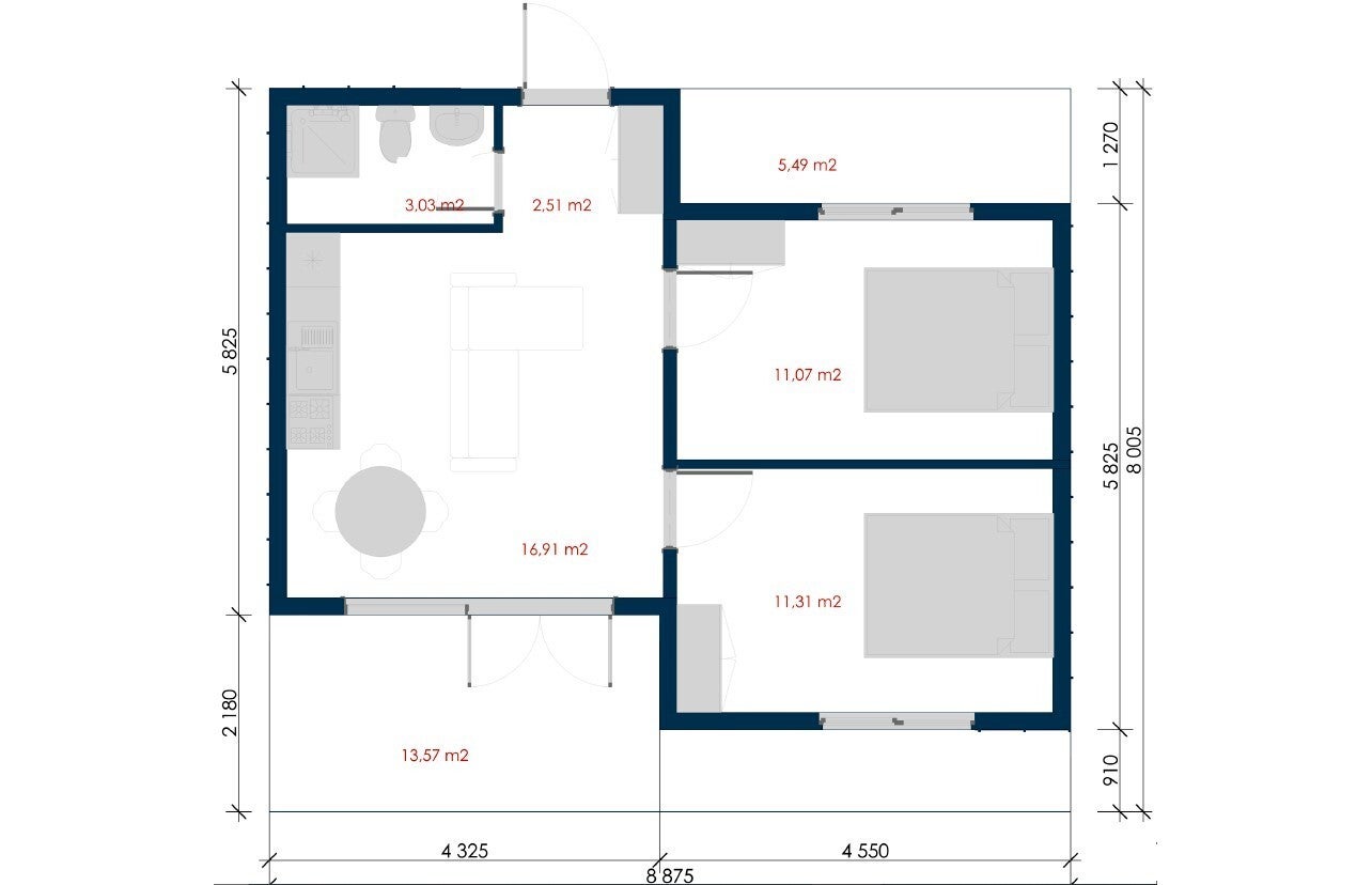Moderne et spacieux à la fois, cette maison en ossature bois peux être construite en petite maison pour deux personnes ou trois personnes, ou même en Studio de Jardin de 52 m² de surface intérieure + une terrasse de 20 m2 comprise que vous pouvez construire vous même.