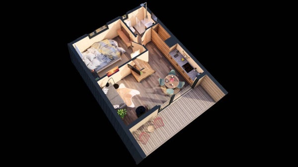 3. Modularité : Comme tous nos kits, l'aménagement intérieur reste flexible. Vous pouvez adapter les cloisons pour créer les espaces qui vous ressemblent (imitation bois, contreplaqué meuble, etc.).