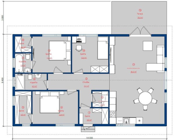 Dimensions construction : 14 m x 8,40 m