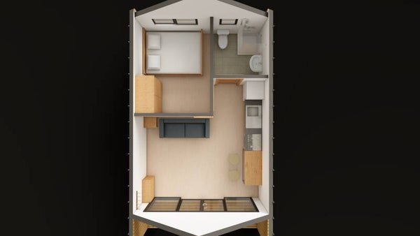 Capacité Maximale & Équilibre Visuel : Avec ses 10,60 m, ce modèle offre le plus grand volume de la gamme. L'agrandissement par doubles tranches permet de créer des zones de vie distinctes (grande suite parentale, espace dînatoire élargi) sans perdre l'aspect élancé du design "Barn".