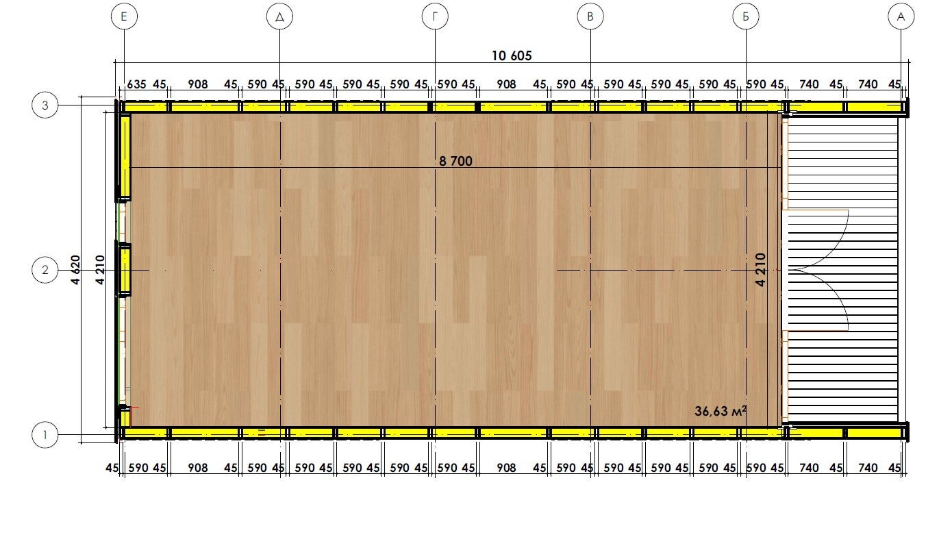 Le montage sur plots béton ou pieux vissés reste possible malgré la taille du bâtiment, ce qui permet une installation propre, rapide et respectueuse de la topographie de votre terrain.