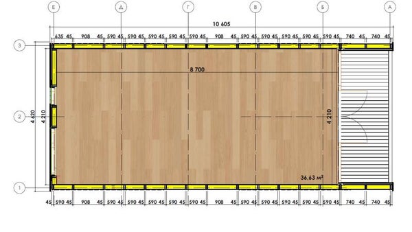 Dimensions de la construction : 4,62 m x 10,60 m