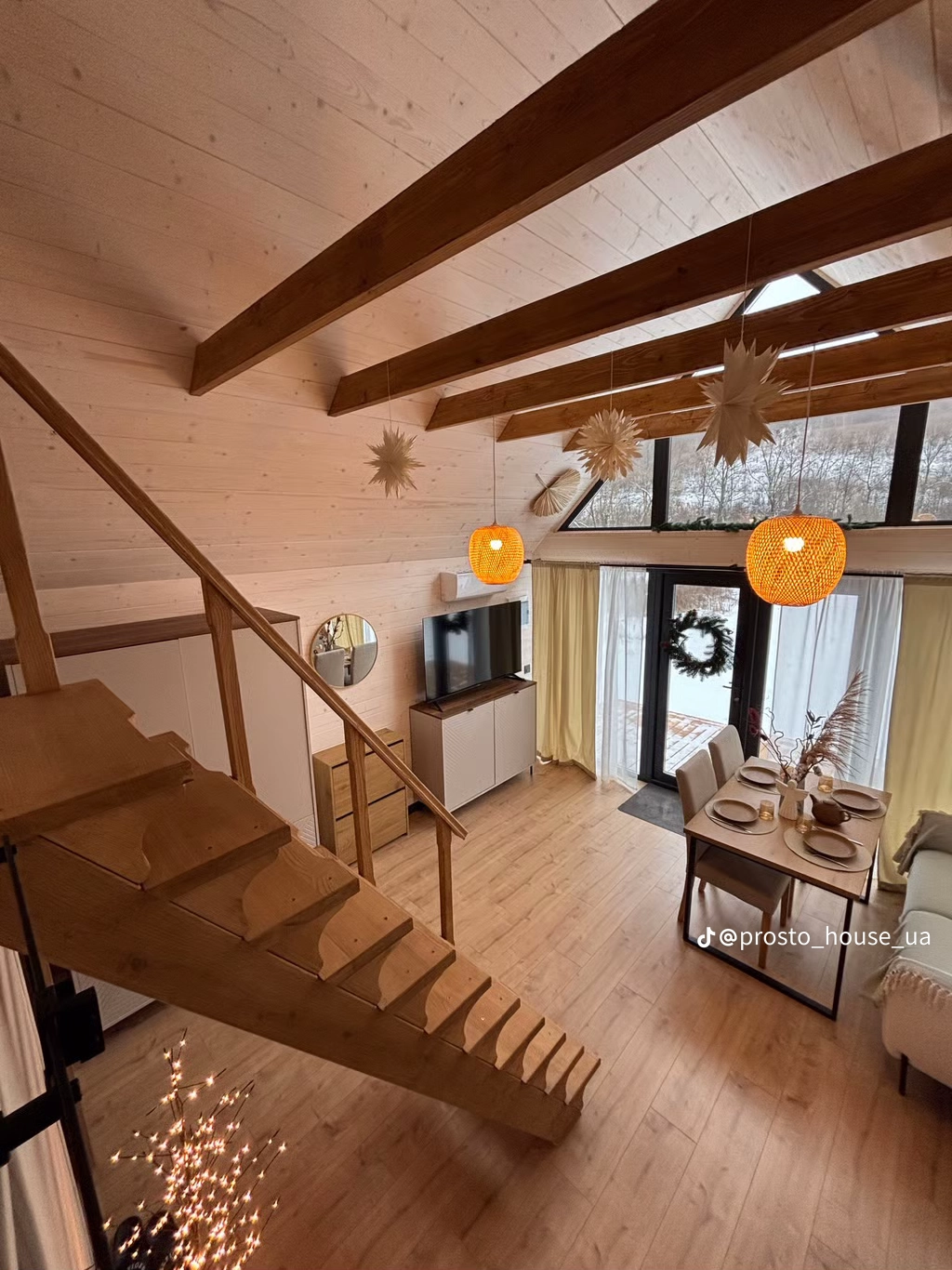 Volume Cathédrale Majestueux : L'étirement de la structure accentue l'effet loft. Le salon sans plafond offre une respiration et une sensation d'espace rares pour une construction bois de cette emprise, idéale pour une vie intérieure aérée et lumineuse.